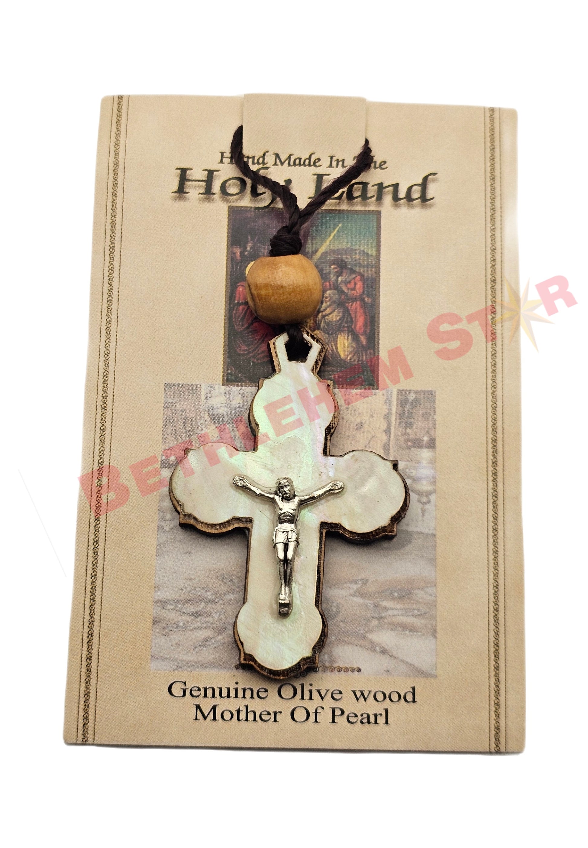 This Mother of Pearls Cross Necklace features a stunning design made from genuine mother of pearl. With its smooth, lustrous appearance, this necklace is both elegant and versatile, making it a perfect addition to any outfit. Complete your look with this beautiful statement piece.